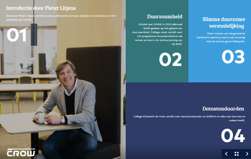 Directeur Pieter Litjens vertelt je wat je allemaal kunt lezen, bekijken en beluisteren in het jaarbeeld van CROW.